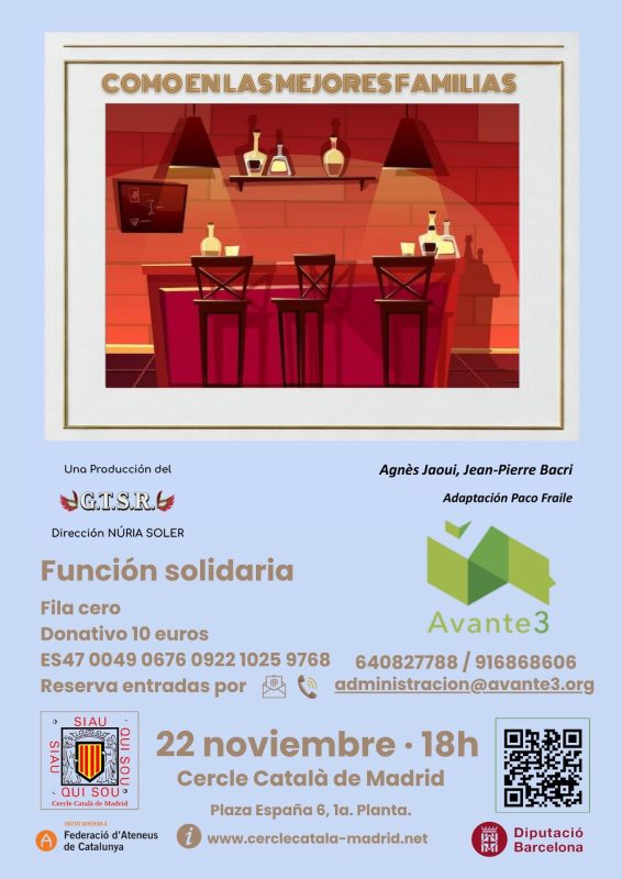Teatro Santiago Rusiñol del Círculo Catalán (Primera Planta) Plaza de España, 6 (Primera Planta), Madrid, MadridNéstor, empleado ejemplar de su empresa, decide, sin motivo aparente ni razón aparente, dejar de ir a trabajar un lunes… Próximo sábado 15, a las 18.00, en la Sala Rusiñol del Círculo Catalán de Madrid, Plaza de España 6. Entrada general 6€ (Entrada reducida 5€ para socios del Círculo Catalán, alumnos de los Talleres Núria […]