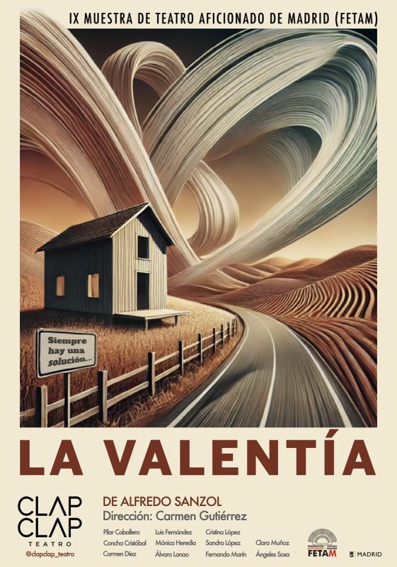 Clap Clap Teatro se presenta por primera vez a la Muestra de FETAM y lo hace con La Valentía de Alfredo Sanzol. Dirigidos desde hace 3 años por Carmen Gutiérrez afrontan esta primera Muestra con dos representaciones, los días 19 y 20 de Junio en Teatro Farándula, en pleno corazón de Chamberí.
