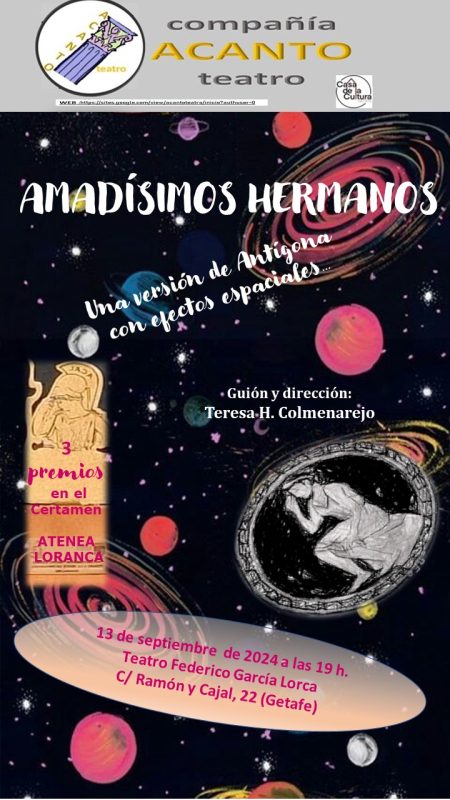Su obra “Amadísimos hermanos…” recibió en 2022, tres Premios (mejor dirección, mejor escenografía, mejor actriz principal) en el Certamen de Teatro Atenea Loranca (Fuenlabrada).