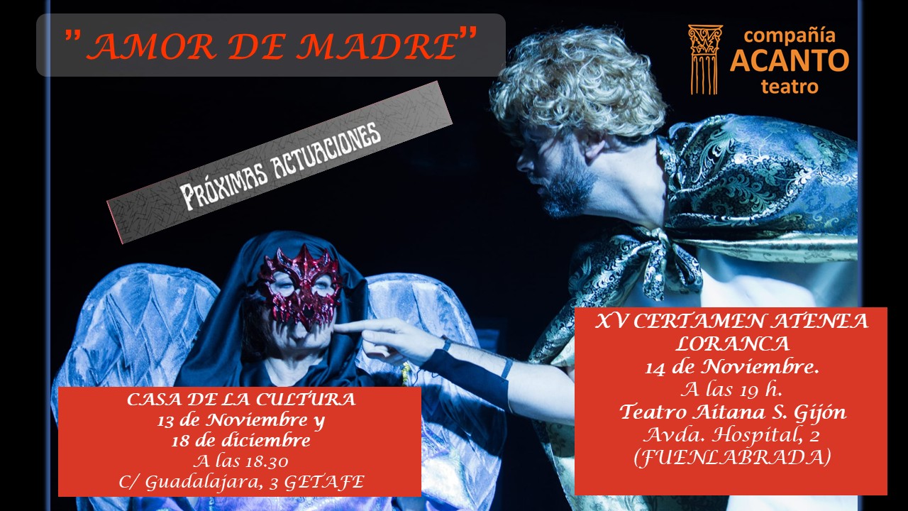 ACANTO Teatro ha recibido el Premio de Artes Escénicas en la Gala de Cultura del Ayuntamiento de Getafe, en 2022, 2023 y 2024.