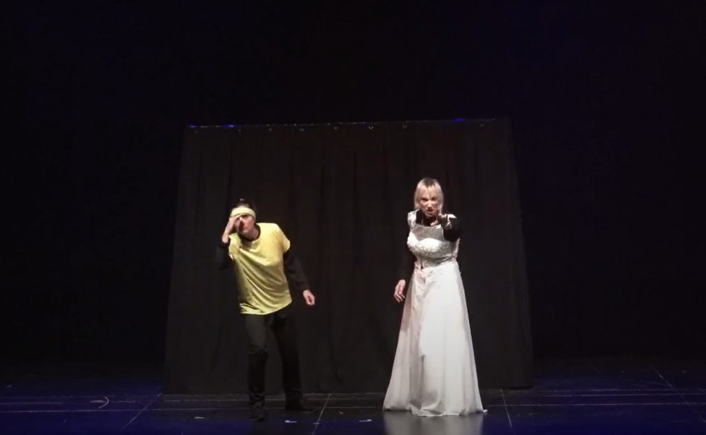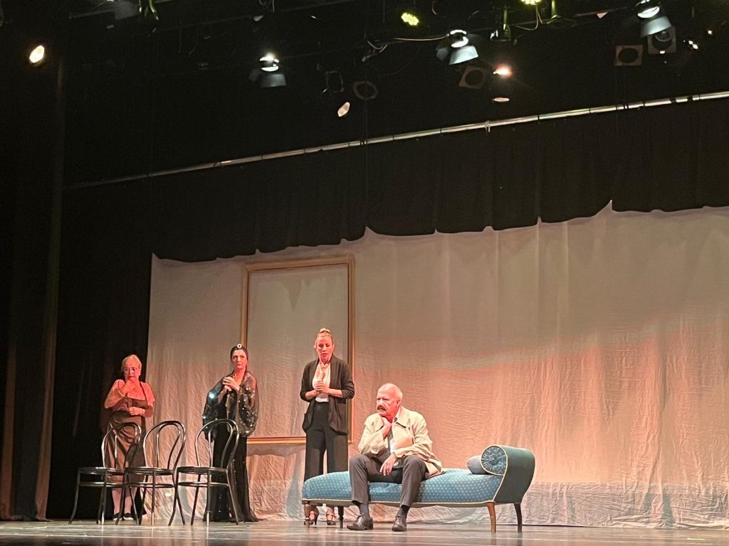 “El cianuro solo o con leche” de Juan José Alonso Millán. ( El autor, que vino a ver la función, nos felicitó por la versión, “la mejor que he visto”, dijo. La obra ganó el Premio a la mejor obra en el certamen de Alba de Tormes y el de mejor actriz).