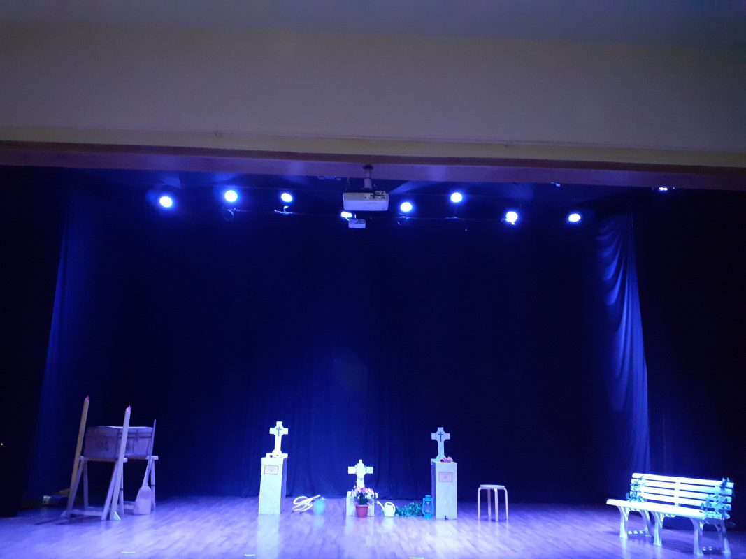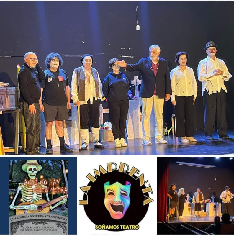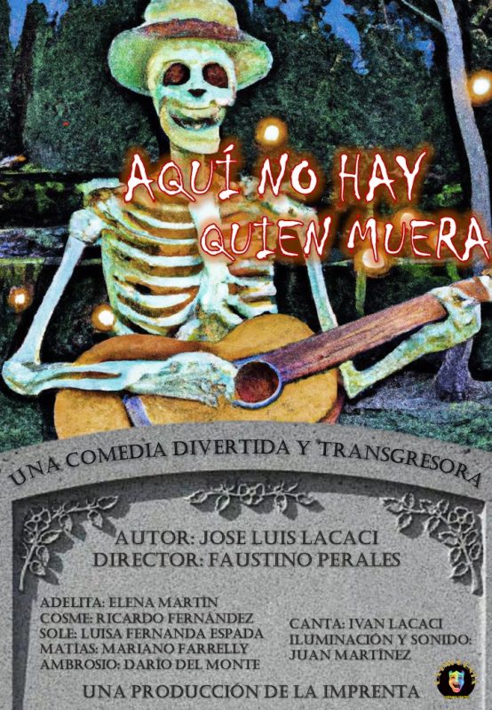 Una “defunción” de teatro con tres escenas y divertidas canciones que retratan la “conmuriencia” de los habitantes de una comunidad de vecinos muy especial. Se trata del día a día en un cementerio diferente, dónde ocurren cosas que no pasan en otros. Unos personajes disparatados, pintorescos y llenos de ternura que hacen olvidar las penas y tomarse la vida con humor y lo que es más…la muerte. Una comedia única en su género.