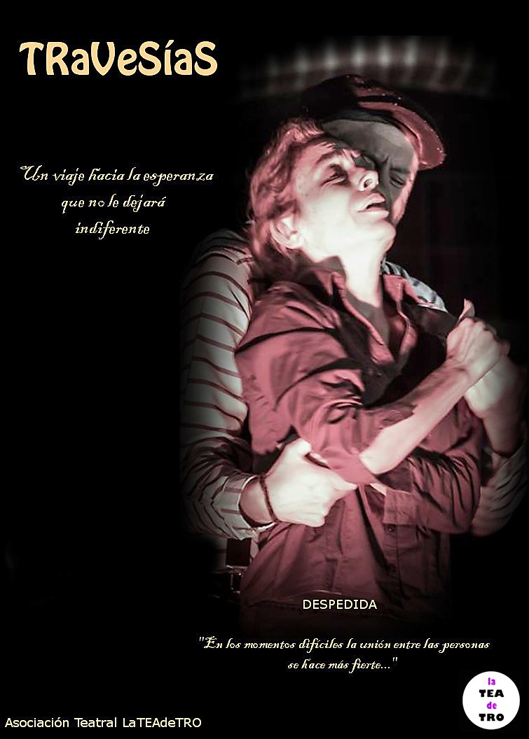 Se repite La historia, emigraron nuestros abuelos y hoy emigran nuestros hijos. Al igual que nuestra propia sociedad está llena de expresividad y de sentimientos, en la que se plasma el drama social de la inmigración, los actores se ponen en la piel de los distintos emigrantes que buscan una vida mejor, y reflejan sus vivencias y adversidades por las que pasan en ese camino, en esas TRAVESIAS. Se embarcan en un viaje con un destino común, un viaje hacia la ESPERANZA. donde poder empezar una nueva vida. TRAVESIAS es una obra de creación colectiva y actual en constante cambio. "Un viaje a la esperanza que no te dejará indiferente"